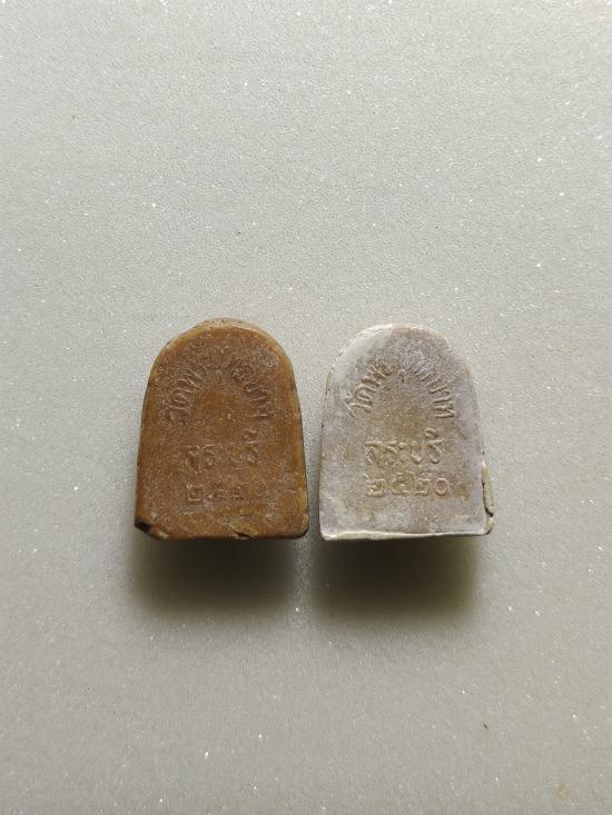 ( เปิดให้เล่นทั้งสององค์เนื้อผงน้ำมันโซนขาวและเนื้อผงน้ำมันโซนน้ำตาลปี๊บ เนื้อผงน้ำมันโซนขาวมีซ่อมปลายมุมด้านบนนิดหน่อยไม่น่าเกลียดมองแทบไม่ออก ส่วนอีกองค์หนึ่งสภาพสมบูรณ์ เหมือนซื้อ 1 แถม 1 เอาไว้ให้ลูกให้หลานห้อยได้ครับ )