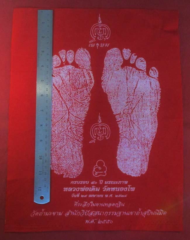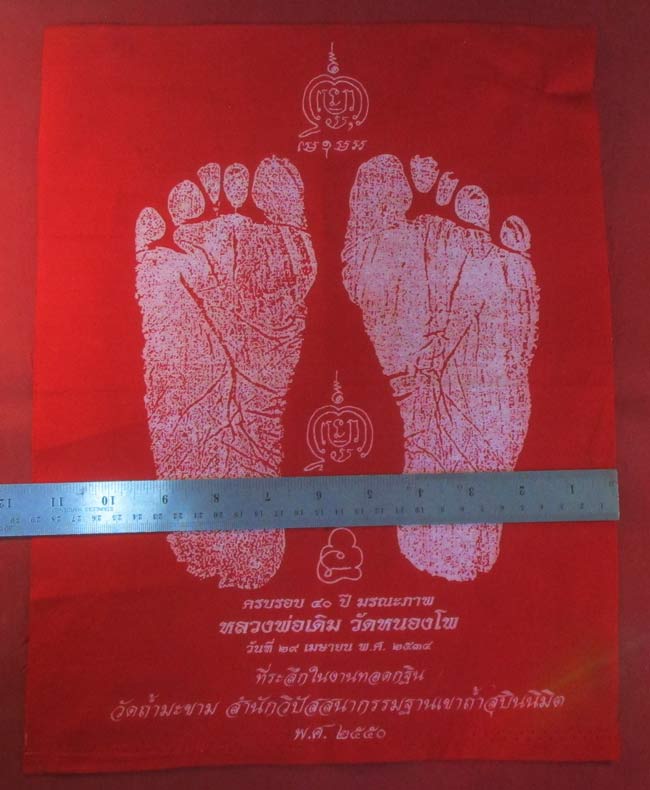 ผ้ายันต์ รอยท้าวหลวงพ่อเดิม วัดหนองโพ ออกวัดถ้ำมะขาม สำนักวิปัสสนากรรมฐานเขาถ้ำสุบินนิมิต ครับ (พระบ้าน ครับ) |