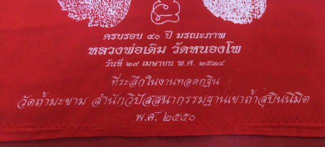 ผ้ายันต์ รอยท้าวหลวงพ่อเดิม วัดหนองโพ