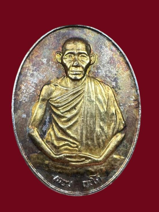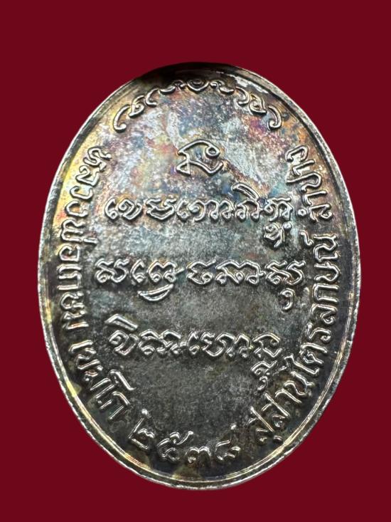 -วัดใจเคาะเดียวแดง-เหรียญหลวงพ่อเกษม เขมโก สุสานไตรลักษณ์ ลำปาง เนื้อกะไหล่เงินลงนะหน้าทอง ปี38