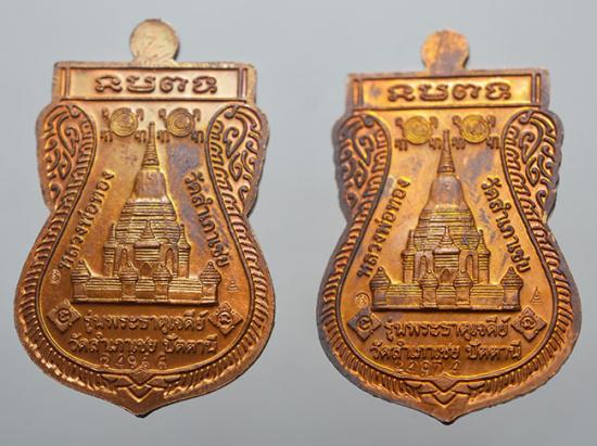 เหรียญเสมา หลวงปู่ทวด อาจารย์ทิม อาจารย์ทอง รุ่น พระธาตุเจดีย์ 2549 เนื้อทองแดง โค๊ด เลข 24974+24966 วัดสำเภาเชย ปัตตานี รับ 2 เหรียญ |