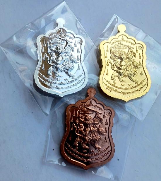 เหรียญรูปเหมือน หลังหนุมาน8กรขี่สิงห์ "มหาเศรษฐี๘๐" หลวงพ่อเอื้อน วัดวังแดงใต้ ชุดกะไหล่เงิน,ทอง,นาค