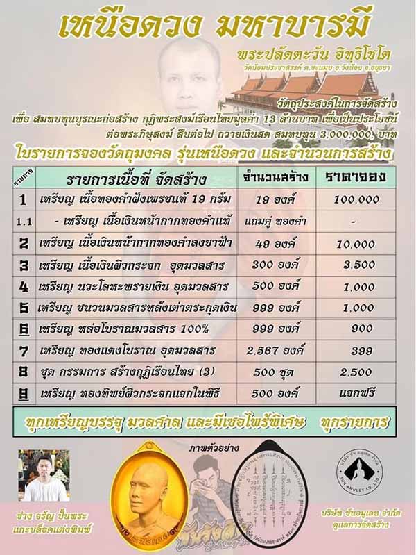 เหรียญเหนือดวงมหาบารมี พระอาจารย์แจ้ (พระปลัดตะวัน อิทุธิโ๙โต) วัดน้อมประชาสรรค์ อยุธยา รายการที่ 7 เนื้อทองเเดงโบราญ อุดมวลสาร ราคาจอง 399