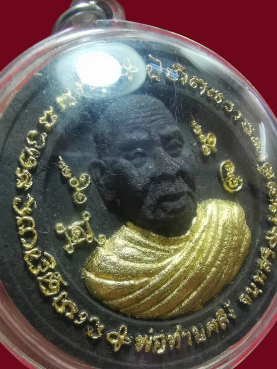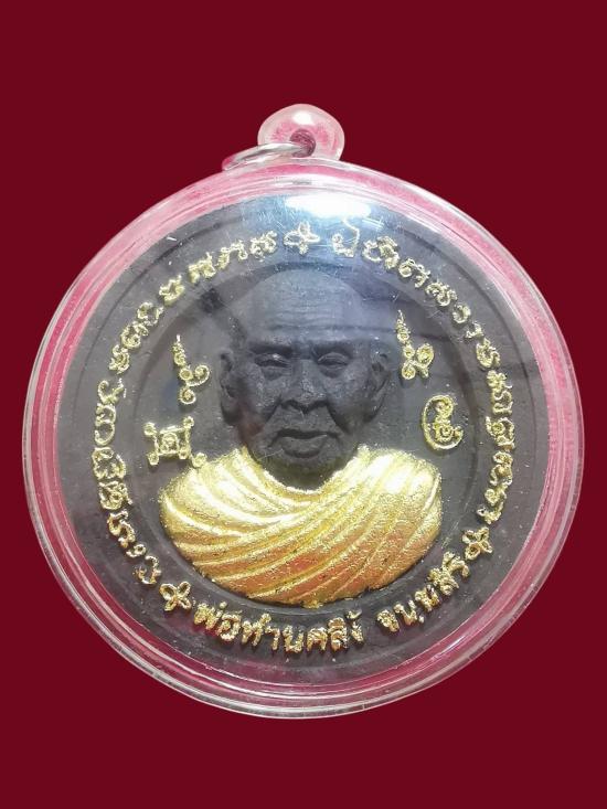 พระผงกลมใหญ่ พ่อท่านคลิ้ง วัดถลุงทอง เนื้อใบลานปัดทอง จ.นครศรีธรรมราชขนาด 7.5 ซม. เลี่ยมพร้อมใช้