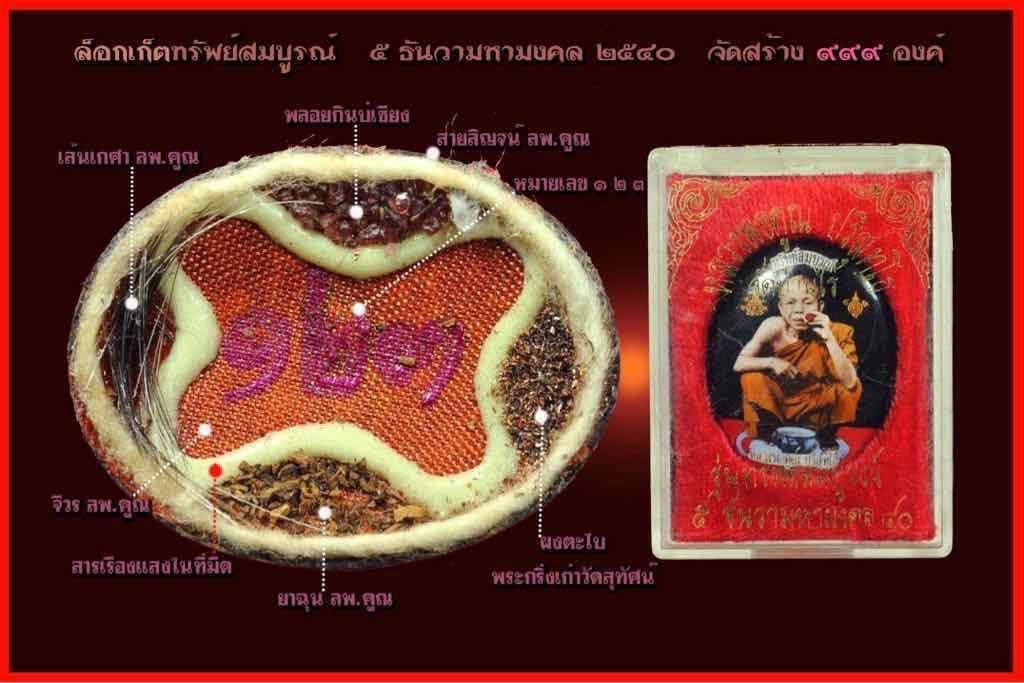 รุ่นทรัพย์สมบูรณ์ หลวงพ่อคูณ อธิษฐานจิตปลุกเสกเดี่ยว เมื่อวันที่ 5 ธันวาคม พ.ศ.2540 พิธีดี ฤกษ์ดี เจตนาดี ปีลึก พระดี ประสบการณ์เด่น วัตถุมงคลของท่านกำลังเริ่มมาแรง ควรรีบเก็บช่วงนี้ เผลออีกทีราคาสูงริบเดี่ยวจะเสียดายนะครับ