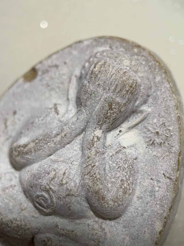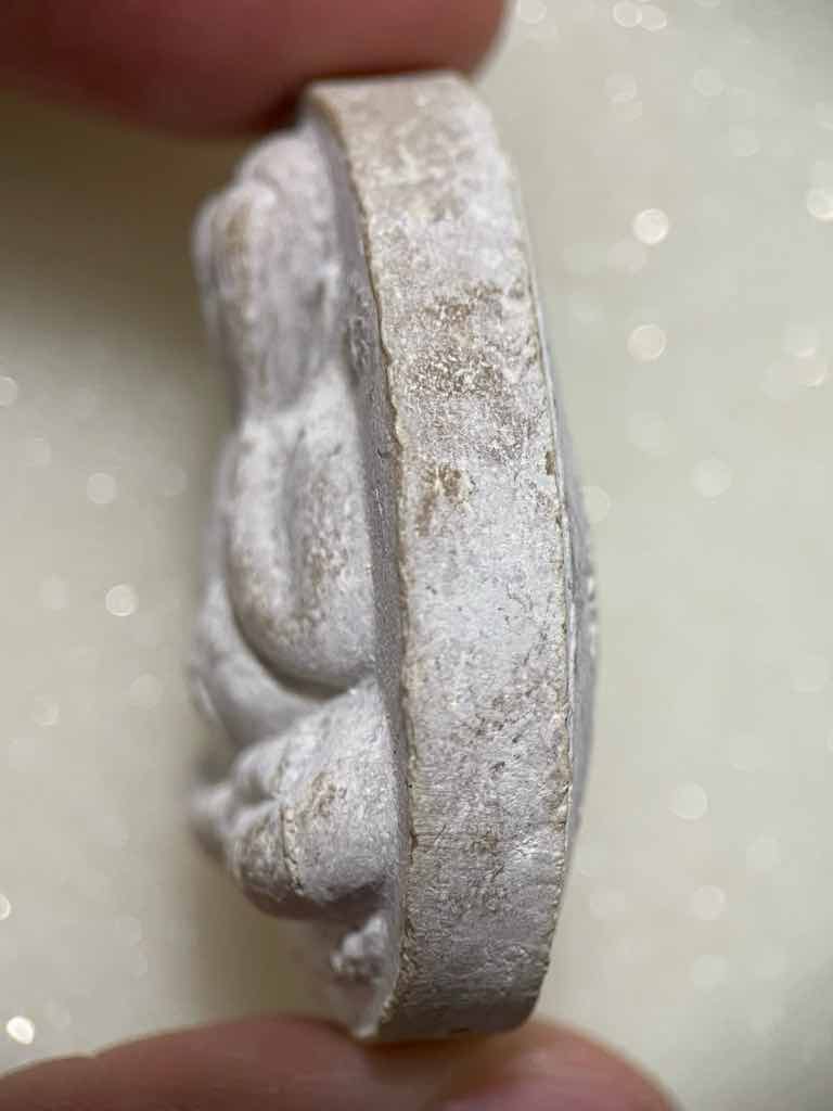 พระปิดตาพิมพ์ใหญ่จัมโบ้ (รุ่นพิเศษ) ปี ๒๕๓๑ ฝังตะกรุด 3 ดอก หลวงพ่อแพ วัดพิกุลทอง จ.สิงห์บุรี เนื้อผงพุทธคุณผสมผงเกสร (ผงขาว) ฝังตระกรุด ด้านหลังปั๊มยันต์ประจำตัวของ หลวงพ่อแพ ด้านล่าง ยันต์ นะโมพุธายะ และ ชื่อหลวงพ่อ คมชัด มียันต์หมึกปั๊ม |