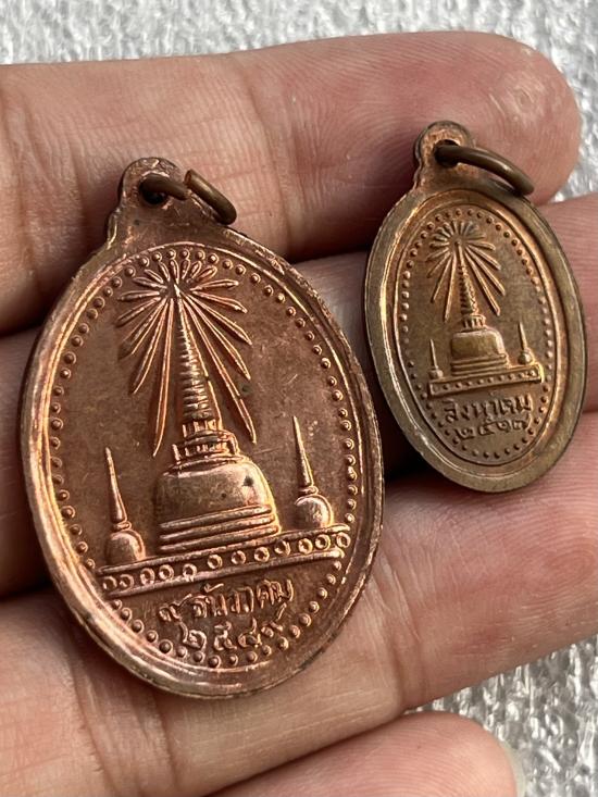 เหรียญพระพุทธสิหิงค์ เนื้อทองแดง ผิวไฟ ปี2549 (2เหรียญ)กับ เหรียญเล็ก ปี2517 สวยเดิมทั้งคู่ |