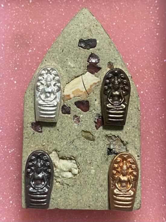 ขุนแผนอินโดจีนฝังกระดูกเนื้อผงพราย เนื้อผงพรายฝังกระดูก หลวงพ่อชำนาญปลุกเสก วัดชินวราราม เจ้าของเดิมนำพระนาคปรกใบมะขาม รุ่น2 เจ้าคุณสนิท วัดท้ายตลาด เนื้อเงิน, เนือนวโลหะ, เนื้อทองชนวน และเนื้อทองแดง ติดด้านหลัง จัดสร้างโดย ทีมงานนิตยสารพระท่าพระจันทร์