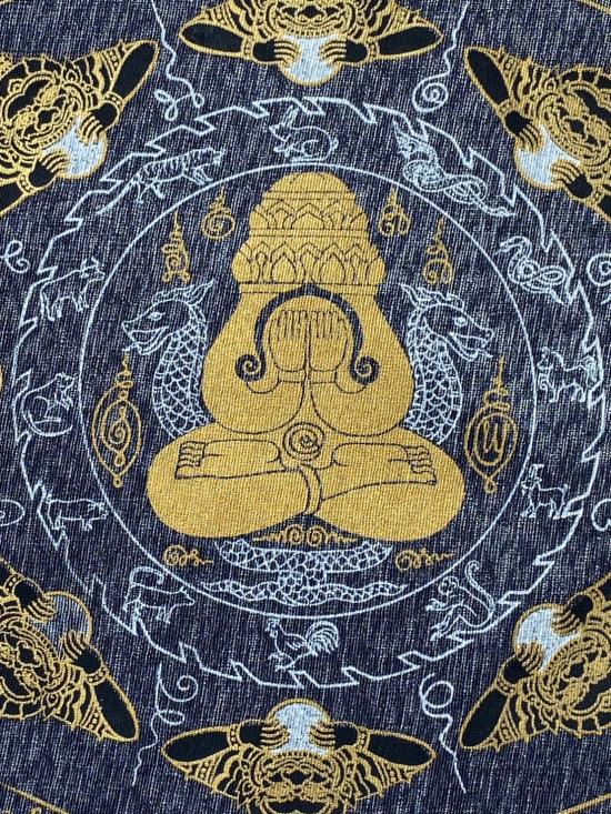 เคาะเดียวแดง ผ้ายันต์ พังพระกาฬ เสริมดวง อุดมมงคล รุ่นมงคลจักวาล ขนาด30/30ซม มีตราประทับ สีดำ |