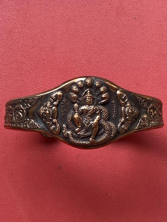 เคาะเดียวแดง กำไล องค์พ่อจตุคาม-รามเทพ รุ่นมงคลจักรวาล เนื้อสำริด เลข 545 |