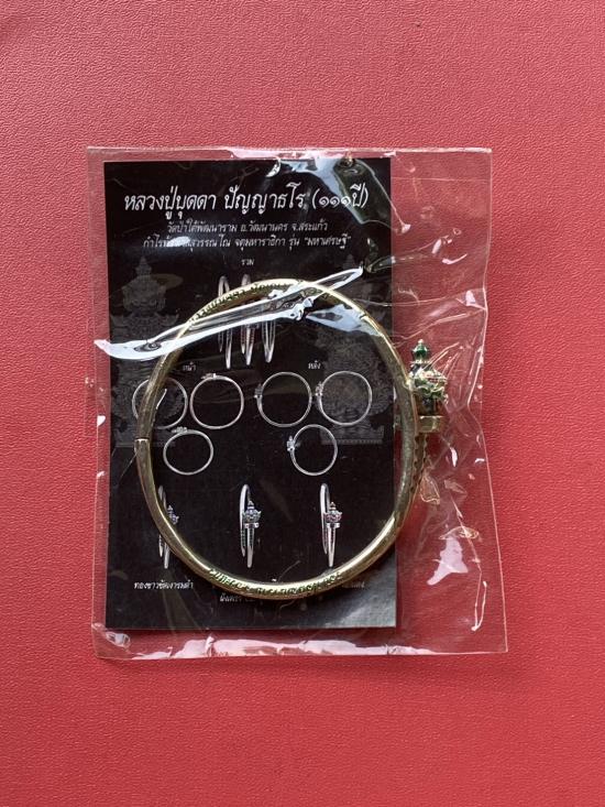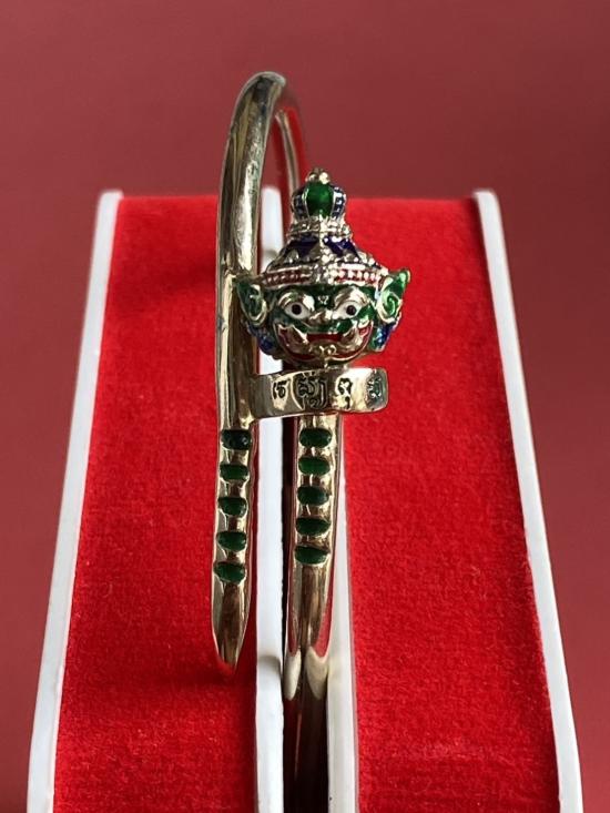เคาะเดียวแดง หลวงปู่บุดดา กำไลท้าวเวส เนื้อ ทองขาวขัดเงาลงยาสีแดง |