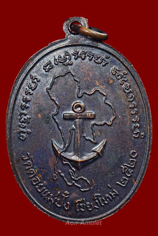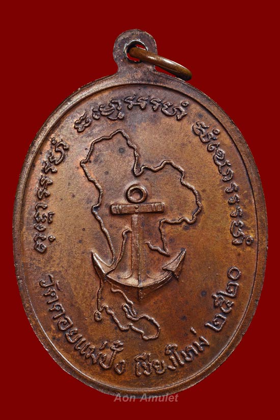 เหรียญรูปไข่เนื้อทองแดง รุ่น ทหารเรือ หลวงปู่แหวน สุจิณฺโณ วัดดอยแม่ปั๋ง อ.พร้าว จ.เชียงใหม่ พ.ศ.2520