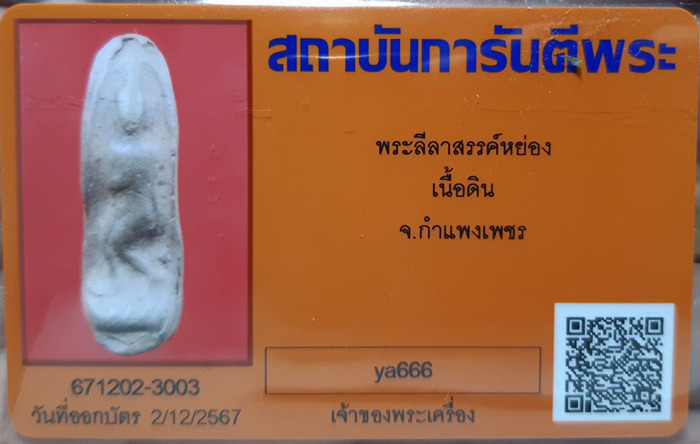 พระลีลาสรรค์หย่อง เนื้อเขียว จ.ชัยนาท**พร้อมบัตร** |