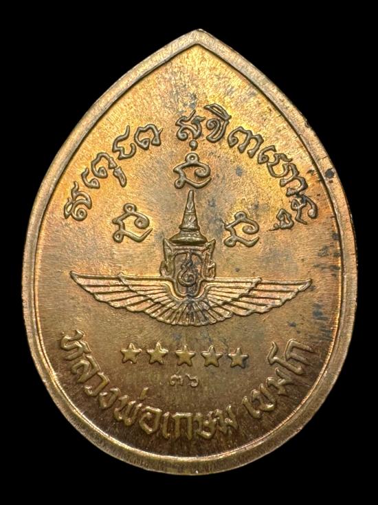 เหรียญหยดน้ำ หลวงพ่อเกษม เขมโก รุ่นกองทัพอากาศ พลเอกกันณ์ ปี 2536 เนื้อทองแดงผิวไฟ สวยๆ