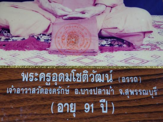 รุปถ่ายเคลือบเรซิ่นขนาด10นิ้ว หลวงพ่ออรรถ วัดองครักษ์ จ.สุพรรณบุรี อายุ91ปี จารปากกา สวยตามรูปเลยครับ เคาะเดียว |