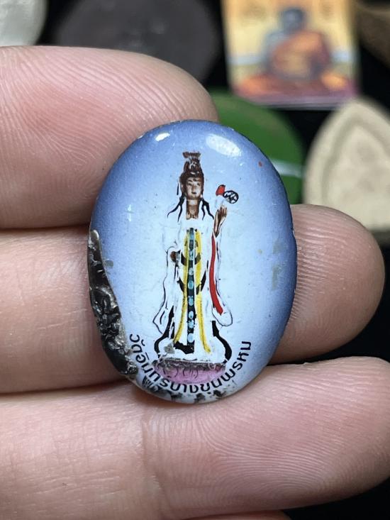 ล็อกเก็ตเจ้าแม่กวนอิม วัดอินทรบางขุนพรหม มีชำรุด หลังจีวร ไม่ทราบปี