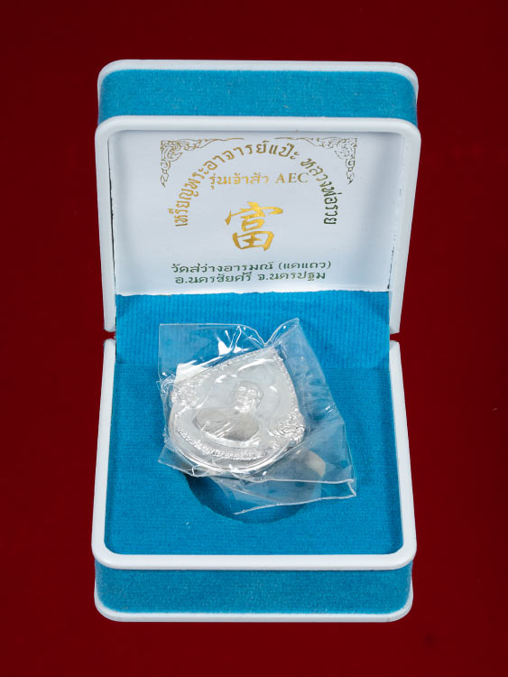 เหรียญพระอาจารย์แป๊ะ หลวงพ่อรวย รุ่นเจ้าสัว AEC วัดสว่างอารม ณ์ ( แคแถว ) จ.นครปฐม พ.ศ.2561 เนื้อเงินบริสุทธฺ์ จารยันต์ ต อกโค๊ต ยิงเลเซอร์หมายเลข กล่องเดิมๆ !!