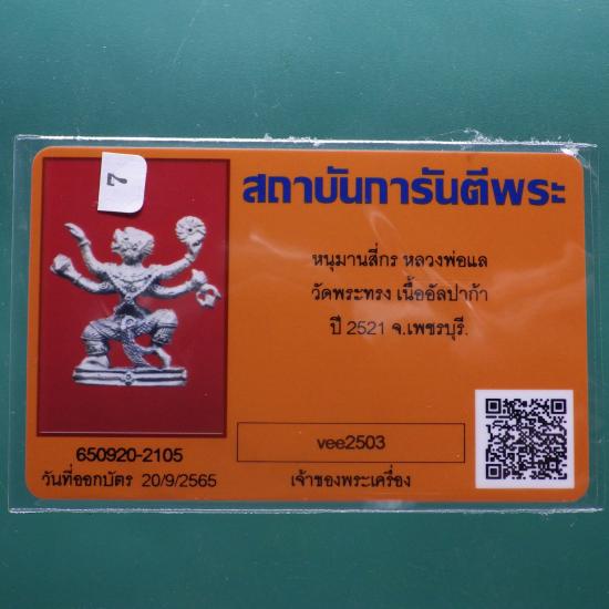 หนุมานหล่อโบราณ 4 กร เนื้ออัลปาก้า หลวงพ่อแล วัดพระทรง จ.เพชรบุรี ปี 2521....7.. (69.2.12