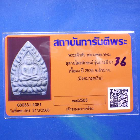 พระผง พิมพ์เจ้าสัว รุ่นบารมี 81 หลวงพ่อเกษม ฝังตะกรุดเงิน ปี2535....36.. (68.6.24 |