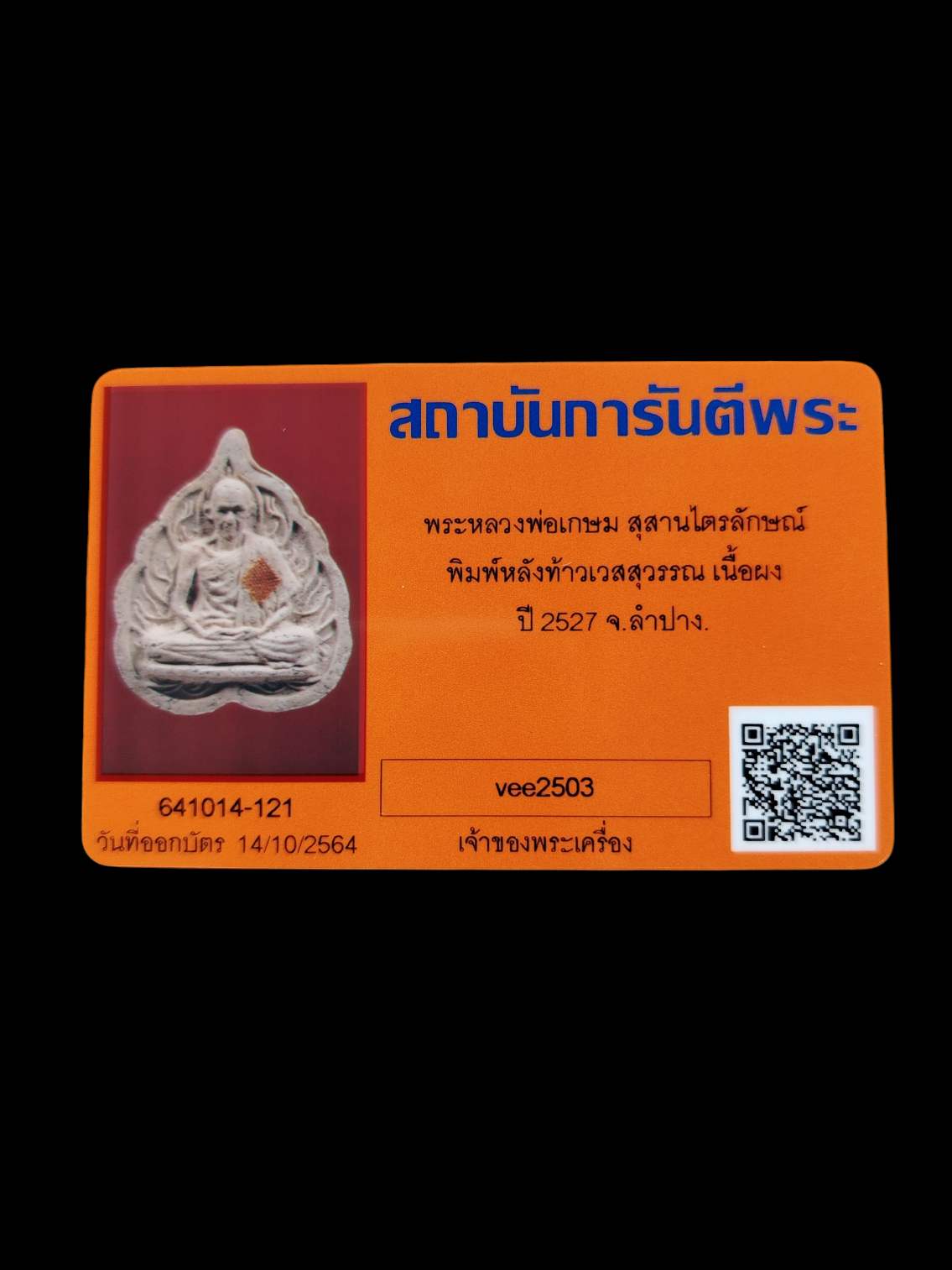 พระผงหลวงพ่อเกษม หลังท้าวเวสสุวรรณ 2527 มาพร้อมบัตรรับรอง