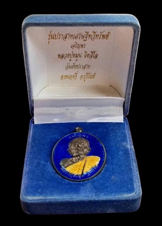 เหรียญรูปไข่ลงยาฉากสีน้ำเงิน กล่องบรรจุภัณฑ์กำมะหยี่ สร้างน้อยมากครับ |