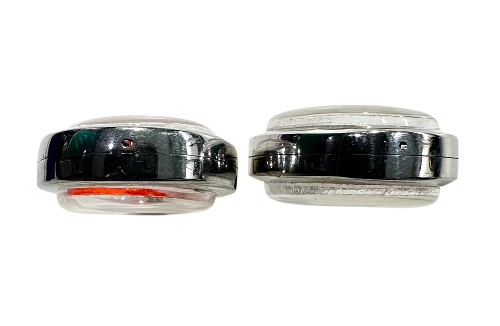 ตลับมือสองสแตนเลสรูปไข่ใส่เหรียญทั่วไป 2 ใบแบบเปิดหน้า-หลังขนาด 2.5 x 2 ซม.