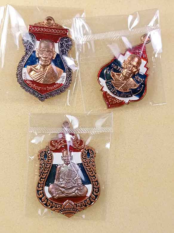 เหรียญ ชุด 3 เหรียญ รุ่นรวยรวยรวย หลวงพ่อพัฒน์ เนื้อทองแดงผิวไฟลงยาสีธงชาติ + เหรียญ รุ่นรวยมหาเศรษฐี + เหรียญ รุ่นรวยสมใจนึก หลวงพ่อพัฒน์ |