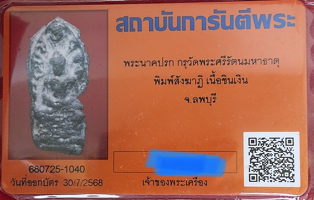 พระนาคปรกเนื้อชินเงิน กรุวัดพระศรีฯ พร้อมบัตรรับรองจากทางเว็บ