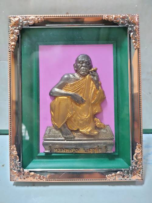 แผ่นกรอบรูปบูชา หลวงพ่อคูณ ปริสุทโธ รุ่น คูณเงินคูณทอง ออกวัดบ้านไร่ ปี 2536 พิมพ์สูบยา เนื้อ ซิลิก้าทาทอง 5x6นิ้ว เคาะเดียวแดง