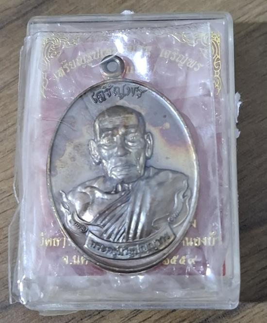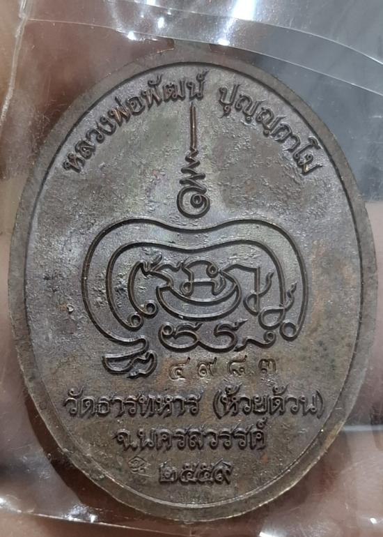 เหรียญหลวงพ่อพัฒน์ วัดห้วยด้วน เจริญพร(รุ่นแรก) ปี ๕๙ เนื้อโลหะผสมชนวน เลข ๔๙๘๓ สภาพจมูกโด่งๆผิวสวยงามมาก อยู่ในซีลเดิมกล่องเดิม