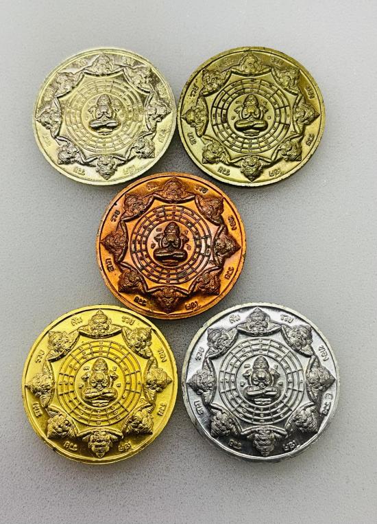 เหรียญองค์พ่อจตุคาม เทพยาดานพเคราะห์ประจำวัน รุ่นอุดมโภคทรัพ ย์ ปี 2549 ขนาด 3.2 cm. ชุดกรรมการ 5 เหรียญ พร้อมกล่องเดิม |