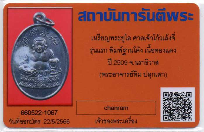 เหรียญพระยูไล รุ่นแรก ปี2509 ศาลเจ้าโก้วเล้งจี่ พิมพ์ฐานโค้ง