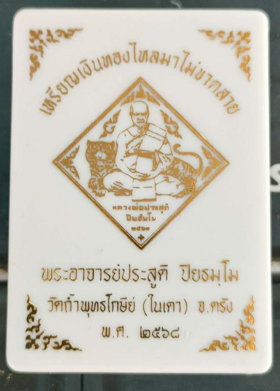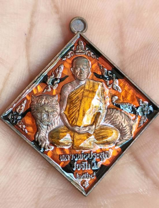 เหรียญรุ่น"เงินทองไหลมาไม่ขาดสาย"เสือนอนกิน หลวงพ่อประสูติ วัดถ้ำพระพุทธโกษีย์(ในเตา)จ.ตรัง เนื้อชนวน ลงยาส้มลายเสือ หลังปู่เจ้าสมิงพราย หมายเลข ๓๓๐ พร้อมกล่อง สวยๆคับ |