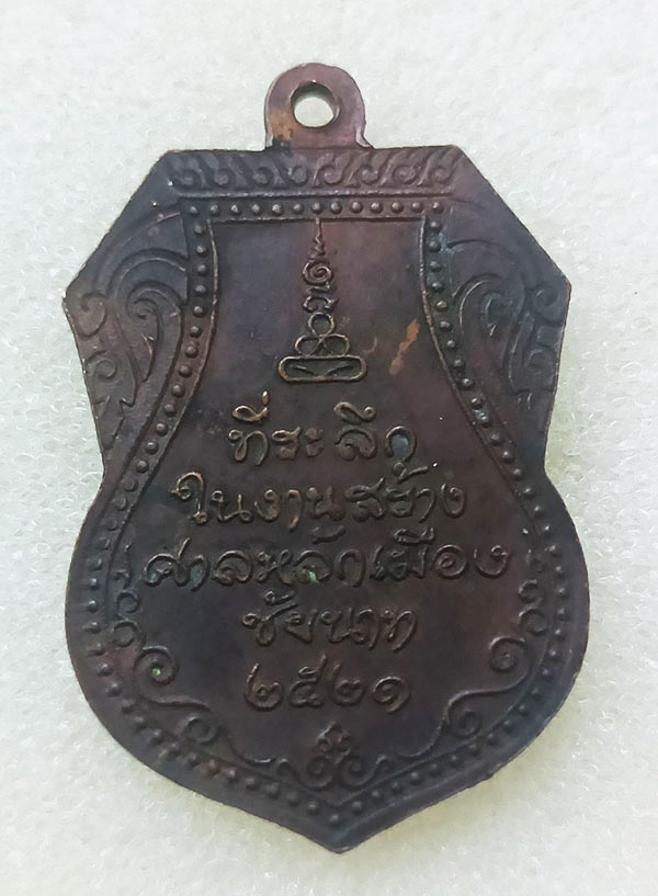 เหรียญหลวงปู่ศุข ที่ระลึกสร้างศาลหลักเมืองชัยนาท ปี 2521 เนื้อทองแดง (ลป.โต๊ะ, ลพ.สุด, ลพ.พริ้ง, ลพ.หน่าย, ลพ.เชื้อ และอีกหลายคณาจารย์ร่วมปลุกเสก)