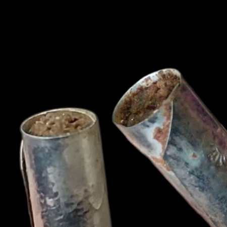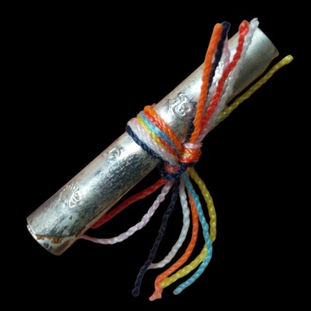 ตะกรุดรัตนสุชาวดีธิฐาน อุดผงพรายพรรณิการ์-แม่ฝ้ายคำ หุงด้วยน้ำมันพรายพรรณิการ์(สวาธุเจ้าญาณวิไชย)ตะกรุดเนื้อเงิน ยาว 3.8 ซ.ม. วัดสันป่าม่วง เมืองพะเยา กล่องเดิม *ราคาจอง350*