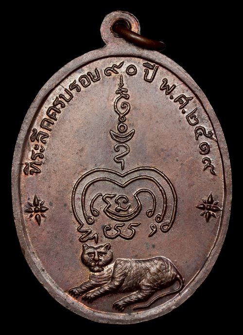 เหรียญหลวงพ่อทองอยู่ วัดใหม่หนองพะอง พิมพ์หลังเสือ บล็อคจุด เนื้อทองแดง ปี 2519 จ.สมุทรสาคร สวยๆครับ
