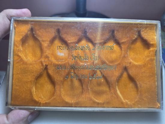 กล่องใส่เหรียญพิธีจตุรพิธพรชัย 2518 หลวงพ่อกวยหลวงปู่สีหลวงปู่ดู่และเกจิมากมายร่วมปลุกเสกครับ