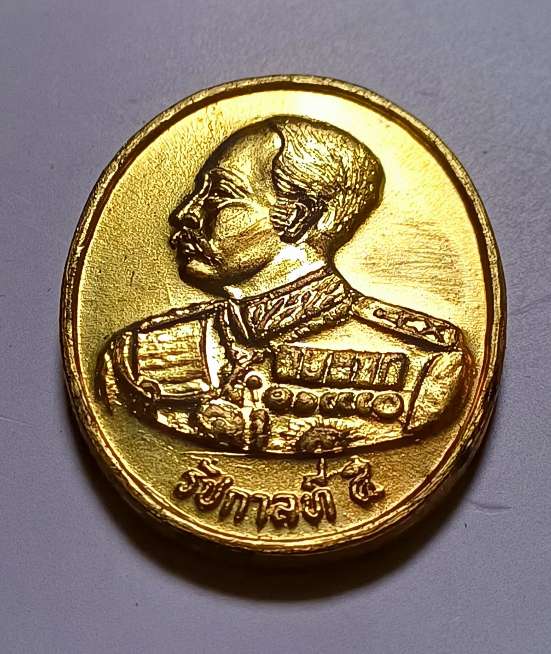 เหรียญรัชกาลที่5 หลัง หลวงพ่อฤาษีลิงดำ ปี35 เนื้อทองฝาบาตร สวยๆๆ