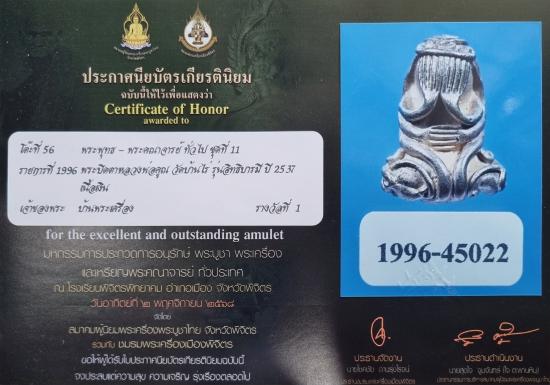 พระปิดตาหลวงพ่อคูณ วัดบ้านไร่ รุ่นอิทธิบารมี เนื้อเงิน ปี 2537 (ตอก 2 โค้ด) พร้อมใบประกาศ ติดรางวัลที่ 1 งานจังหวัดพิจิตร (งานสมาคมฯ)