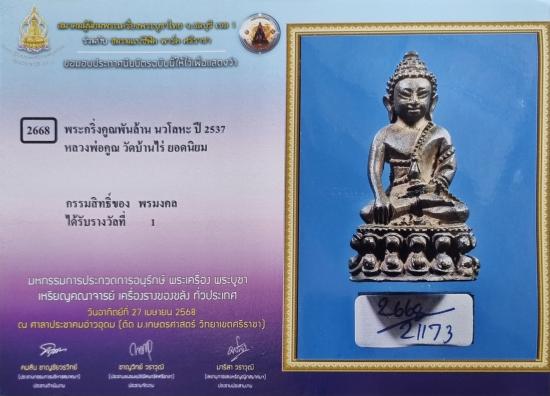 พระกริ่งคูณพันล้าน เนื้อนวโลหะ ปี 2537 พร้อมใบประกาศ ติดรางวัลที่ 1 งานศรีราชา(งานสมาคมฯ)