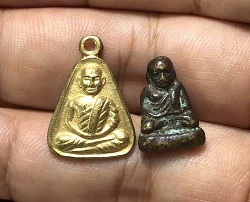 - เหรียญจอบเล็กกะหลั่ยทองหลวงพ่อเงิน ปี 2527 + รูปหล่อเล็ก หลวงพ่อพ่อเงินไม่ทราบรุ่น !! เคาะเดียว !! รับพระ 2 องค์