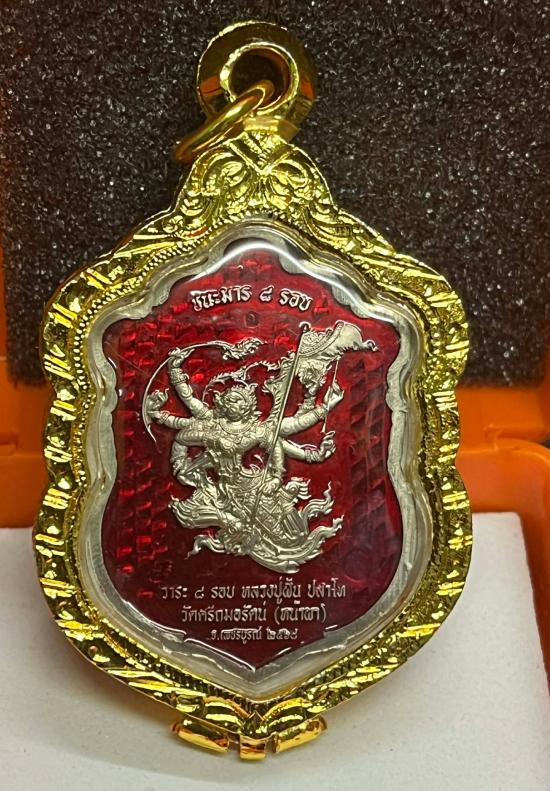 หลวงปู่ฝั้น ปสาโท หลวงพ่อฝั้น วัดศรีถมอรัตน์ เพชรบูรณ์ ท่านเป็นศิษย์ หลวงพ่อเดิม (สามเณรเลี้ยงช้างหลวงพ่อเดิม) หลวงพ่อกวย หลวงพ่อทบ ท่านเดินธุดงวัตร ทั่วประเทศไทย 3 รอบรุ่น รุ่นเสมาชนะมาร พร้อมกรอบ |