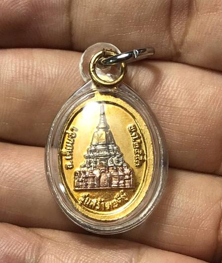 100 - เหรียญหลวงพ่อชื่น วัดในปราบ จ.สุราษฎร์ธานี รุ่นสร้างเจดีย์ เนื้อ 3 K เลี่ยมพร้อมใช้ |
