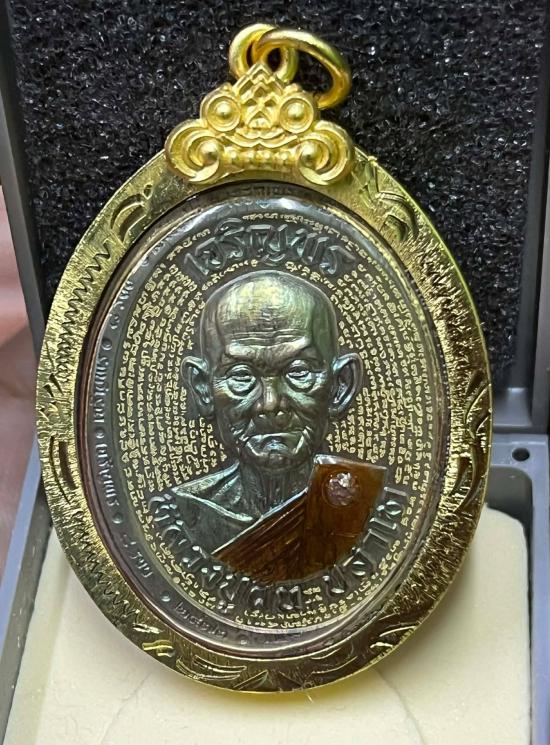 หลวงปู่ฝั้น ปสาโท หลวงพ่อฝั้น วัดศรีถมอรัตน์ เพชรบูรณ์ ท่านเป็นศิษย์ หลวงพ่อเดิม (สามเณรเลี้ยงช้างหลวงพ่อเดิม) หลวงพ่อกวย หลวงพ่อทบ รุ่น รุ่น เจริญพรบน พิเศษด้านหน้าอุดมวลสาร หลังหลวงปู่ทวด |