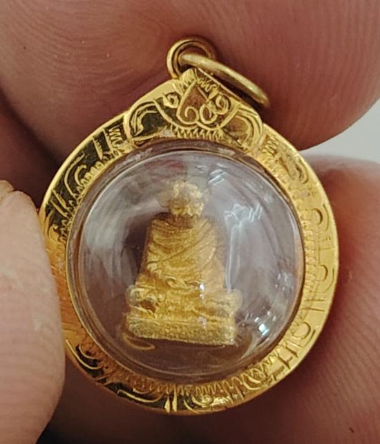 รูปเหมือนจิ๋วเสาร์5หลวงพ่อเกษมเนื้อทองคำเลี่ยมทองพร้อมใช้