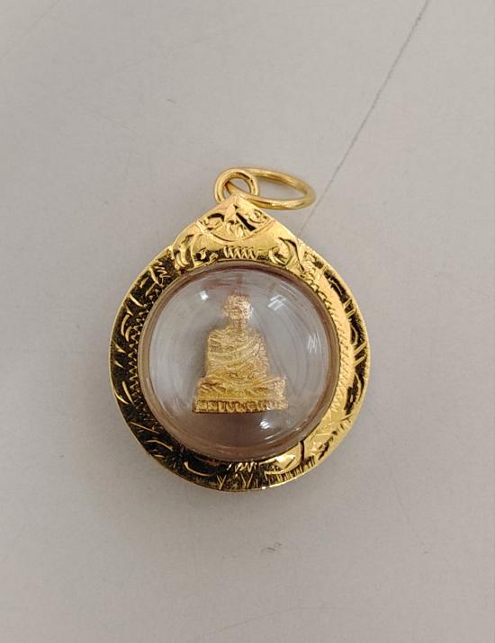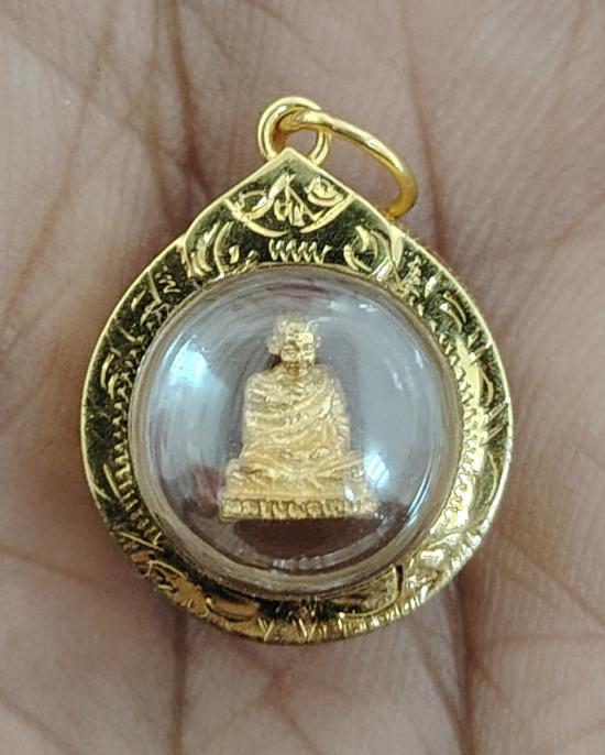 รูปเหมือนลอยองค์จิ๋วหลวงพ่อเกษมเนื้อทองคำเลี่ยมทองพร้อมใช้