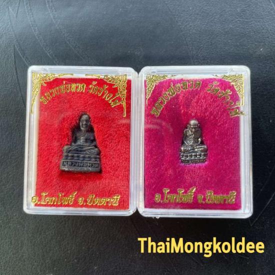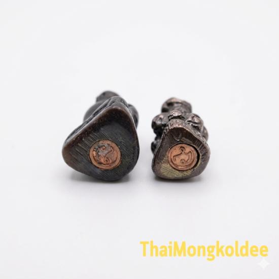 รูปหล่อหลวงพ่อทวด เนื้อโลหะรมดำ อุดกริ่ง โค๊ดทองแดงตัว นะ ของวัดช้างให้ จำนวน 2 องค์ ไม่ทราบปี รับประกันพระแท้ตามกฏจีพระ