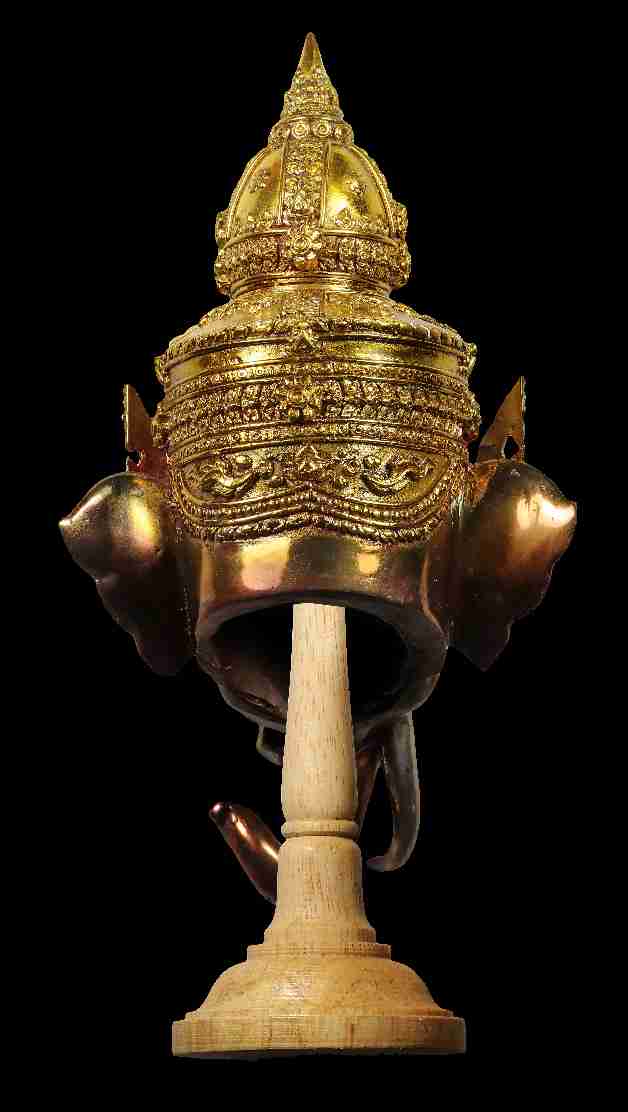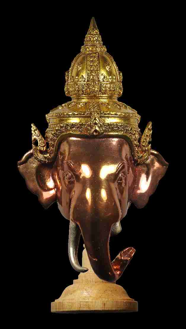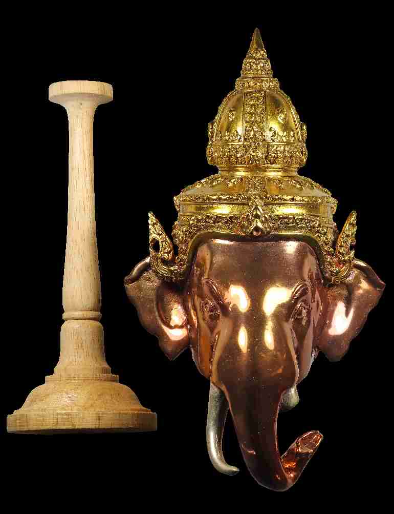 เศียรพระพิฆเณศ เรือนเทวาบริรักษ์ เนื้อโลหะทำสีพร้อมแท่นไม้
