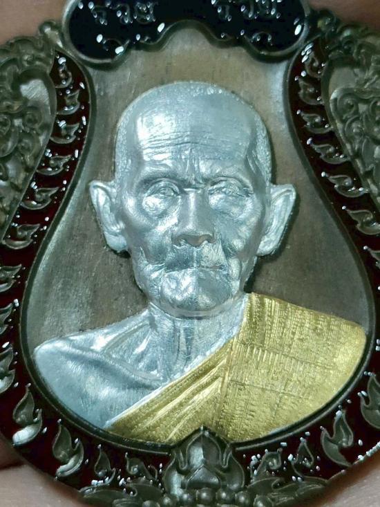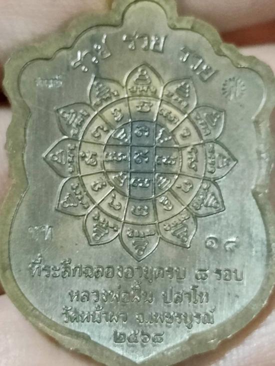 เหรียญชุดนำฤกษ เสมารวย รวย รวย หลวงปู่ฝั้น วัดหน้าผา จ.เพชรบูรณ์ เนื้อชนวนหน้ากาก 2 K ลงยาขอบแดง บนน้ำเงิน ตอกโค๊ต นำฤกษ ตอก ฝ ตอก ช ท ตอกหมายเลข 18