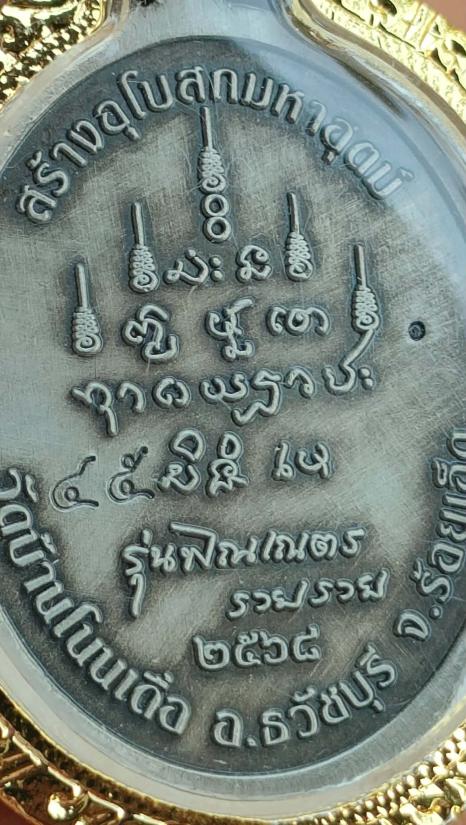 เหรียญพระพิฆเนศรุ่นพิณเณตร รวย รวย หลวงปู่ศิลา อุปถัมภ์สร้างโบสถ์มหาอุตม์ วัดบ้านโนนเดื่อ จ.ร้อยเอ็ด เนื้ออัลปาก้าซาติน ลงยาแกแล็คซี่ เลี่ยมกรอบชุบทองอิตาลี หมายเลข ๔๕ พร้อมกล่อง ผลรวมได้๙ ลงยาสวยมาก |